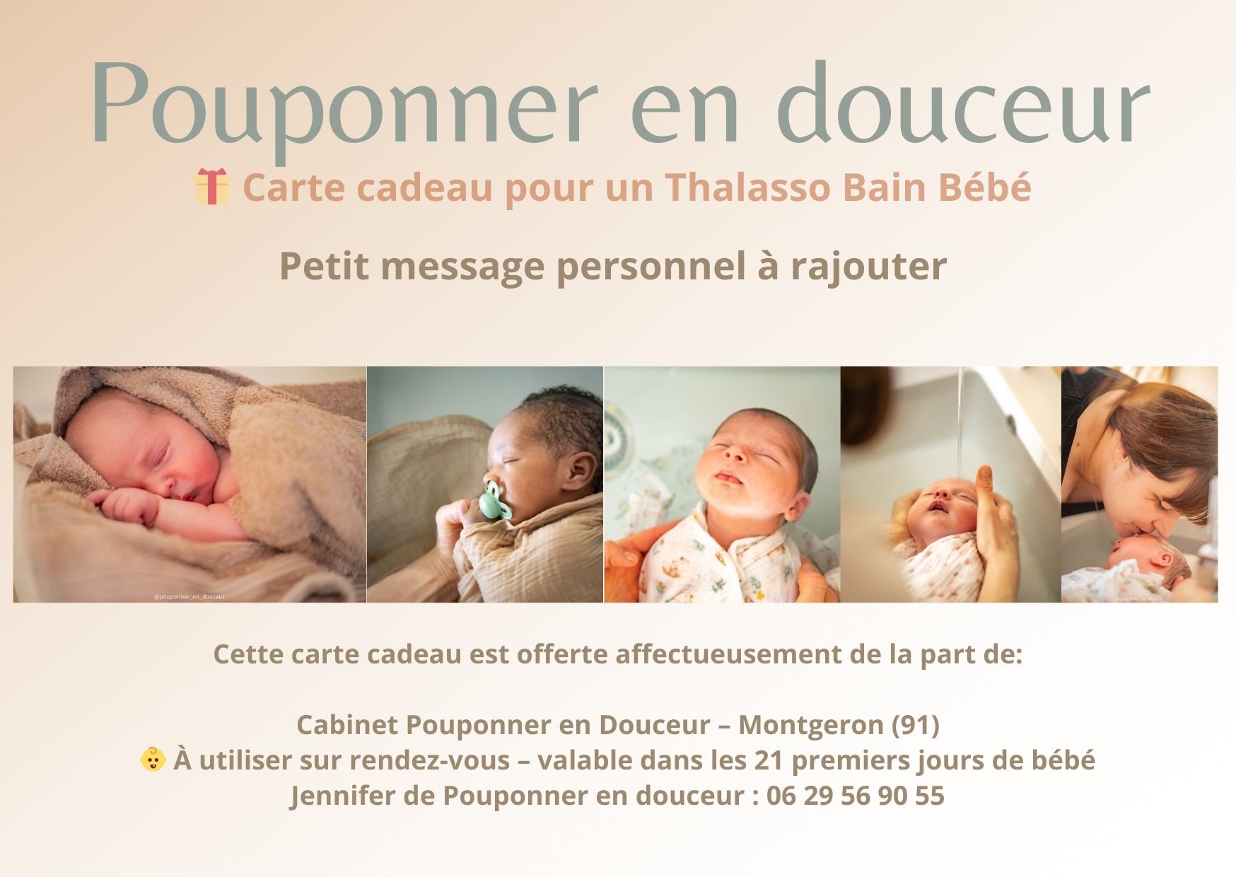 Les prestations peuvent être offertes en carte cadeau ou ajoutées à une liste de naissance.